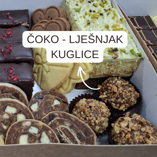 košarice s borovnicom i čokoladom, slatku salamu, čoko – lješnjak kuglice.