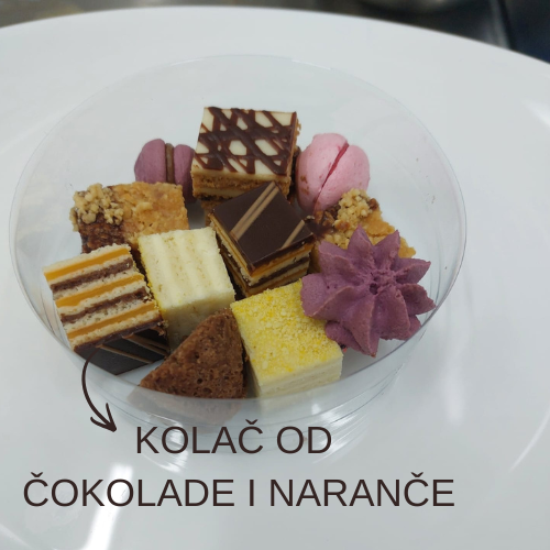 minjon s malinom, bijelu pitu, kolač od čokolade i naranče,